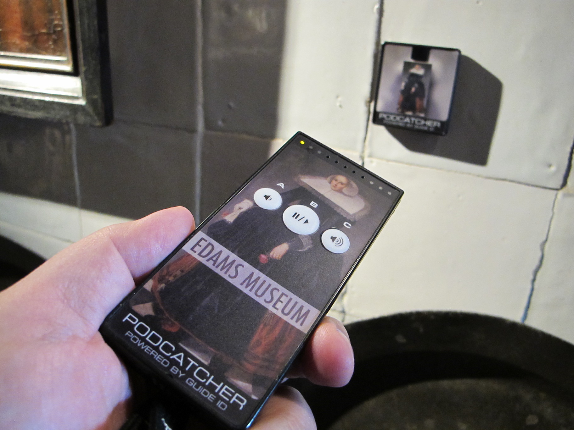2. the largest museums use digital technologies extensively, but just as in the US, visitors engage with them only briefly, if at all. The only exception were the Podcatcher audio handsets, a handheld device about the size and weight of a pack of cigarettes, which visitors continually used. It’s triggered when held close to a small id tag on a wall or near an object (RFID?) and then placed to your ear to hear the interpretation. Three buttons pause or play the audio and control the volume, and can double-up to provide deeper information (e.g., “press A to learn more about the artist”). It’s simple and light, easy to clean, and allows visitors to choose what they want to do. The Podcatcher is created by Guide ID and seems to be available only in the Netherlands, Belgium, and UK, but I can see them being very popular in the US. If you’re thinking of audiotours, you’ll want to check them out.