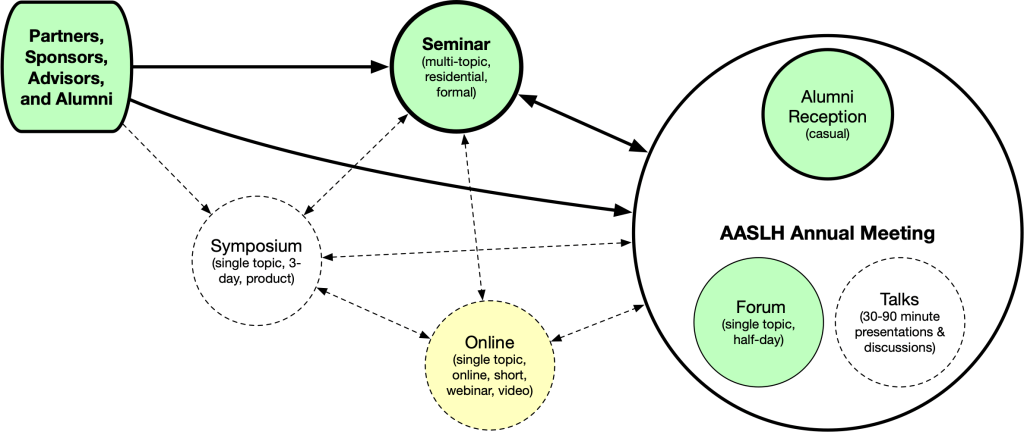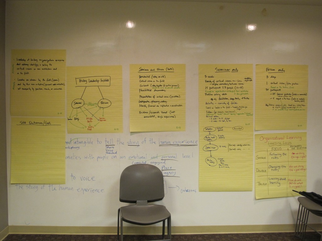 While we gathered for three weeks in November 2017 for the Seminar at the Indiana Historical Society, I worked on a side project to rethink the program to make it more sustainable and attractive. In the usual HLI fashion, I sketched out ideas on flipcharts spread out on the classroom wall, asking everyone who came into the room for their reactions and ideas. By the end of the Seminar, I had diagrammed a long-range plan with immediate and short-term recommendations that included: