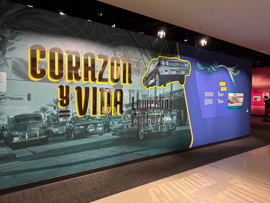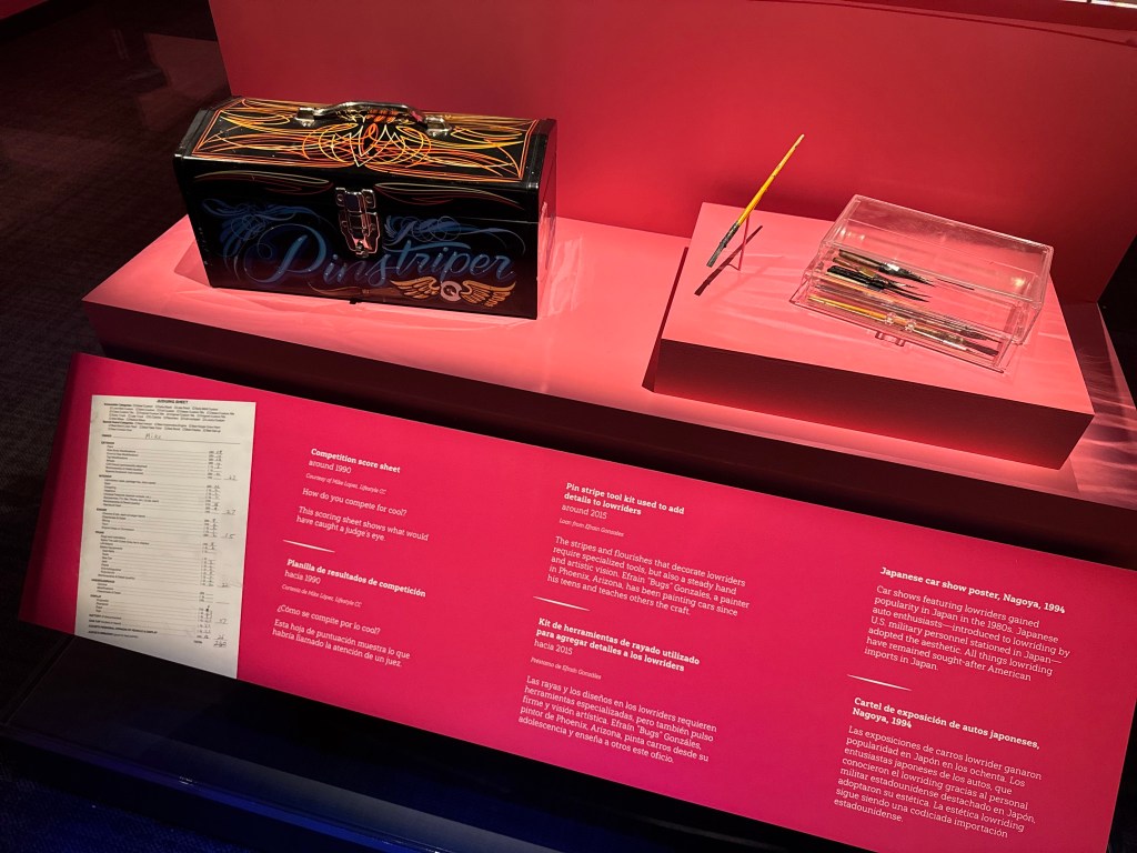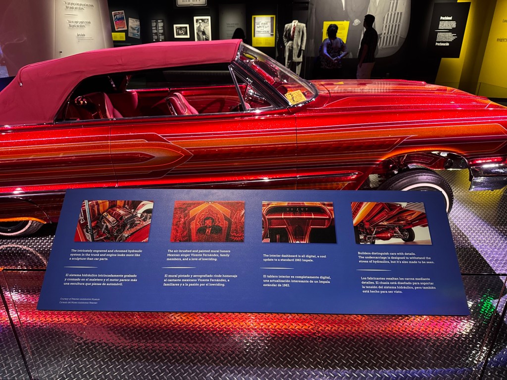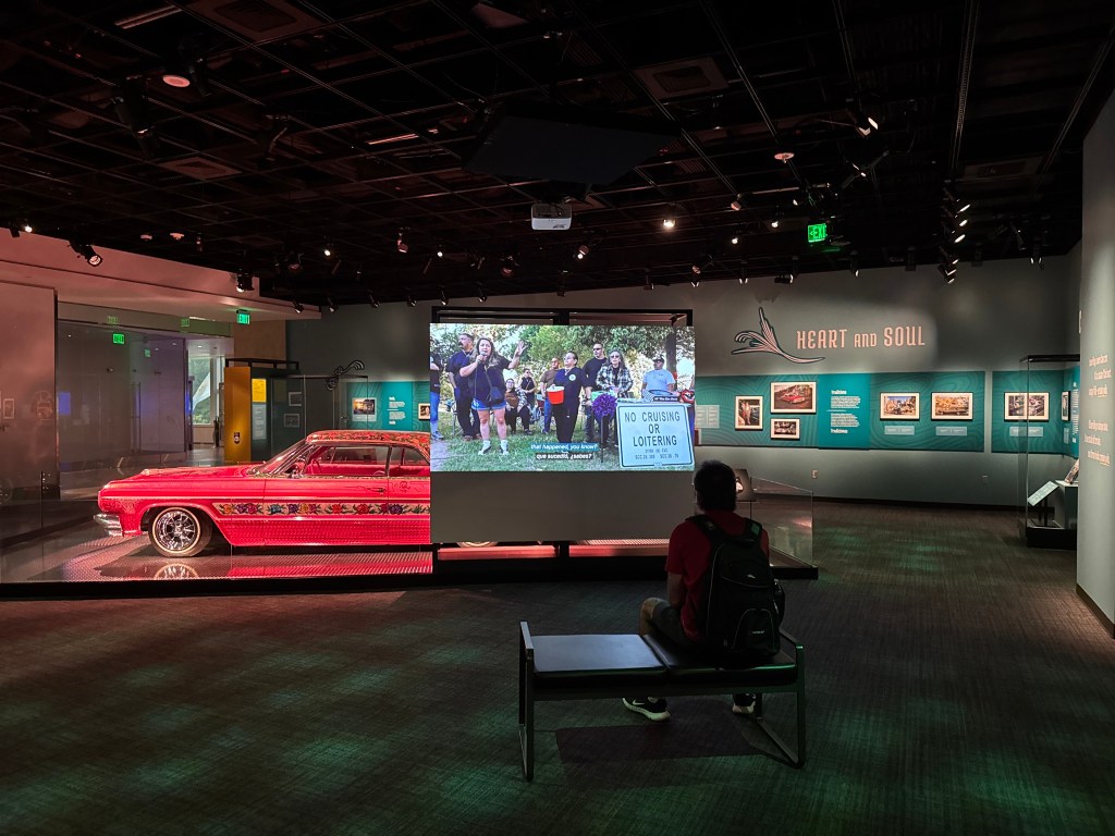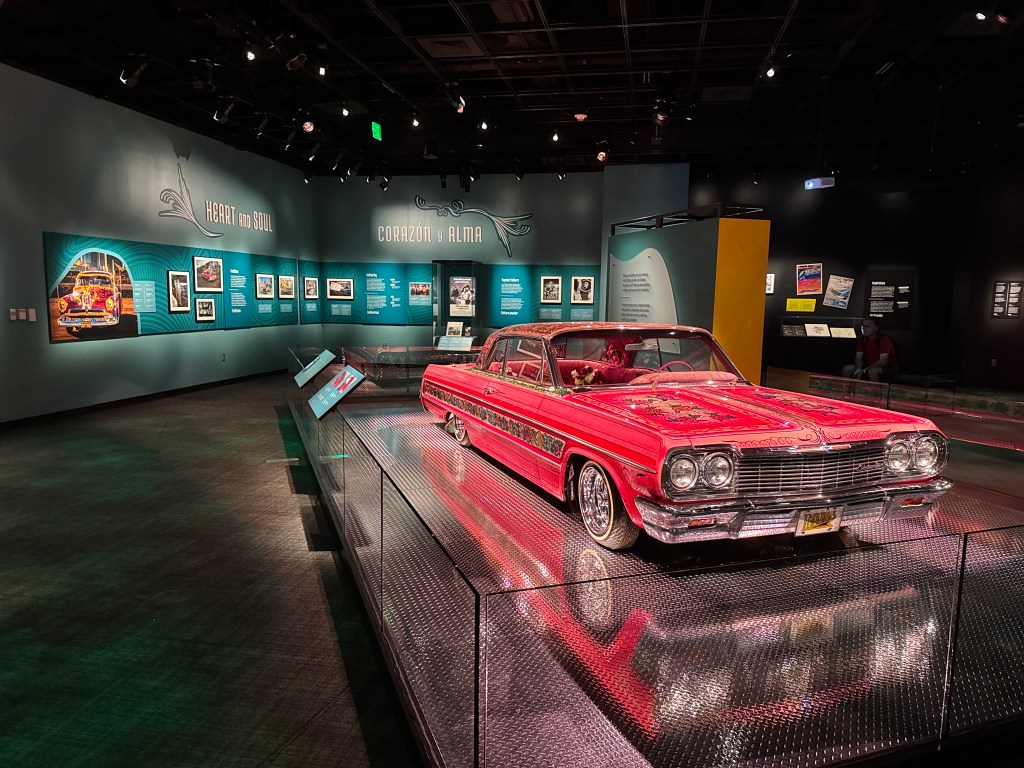 Afterwards, as a bonus, curator Steve Velasquez gave my students a tour of the newest exhibition, Corazón y Vida: Lowriding Culture, which opened the previous week. Featuring two amazing cars (one from my former hometown of Upland, California), it explores the communities of owners, artists, clubs, and admirers of this unique car-making tradition. Director Anthea Hartig stopped by to meet my students, which made the experience extra special.