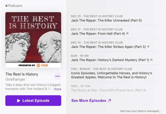 Apple Podcasts recently named The Rest is History its Podcast of the Year, and in a December 4 interview on In Conversation from Apple News, hosts Dominic Sandbrook and Tom Holland reflected on why history is resonating so strongly today. Sandbrook argues that despite assumptions, young people are deeply interested in the past—provided it is presented through compelling stories and vivid characters. Academic historians, he suggests, sometimes struggle to reach broad audiences because they avoid narrative. For Sandbrook, stories of the Second World War, Greek myth, the Trojan War, and Rome endure because they are foundational to human identity.