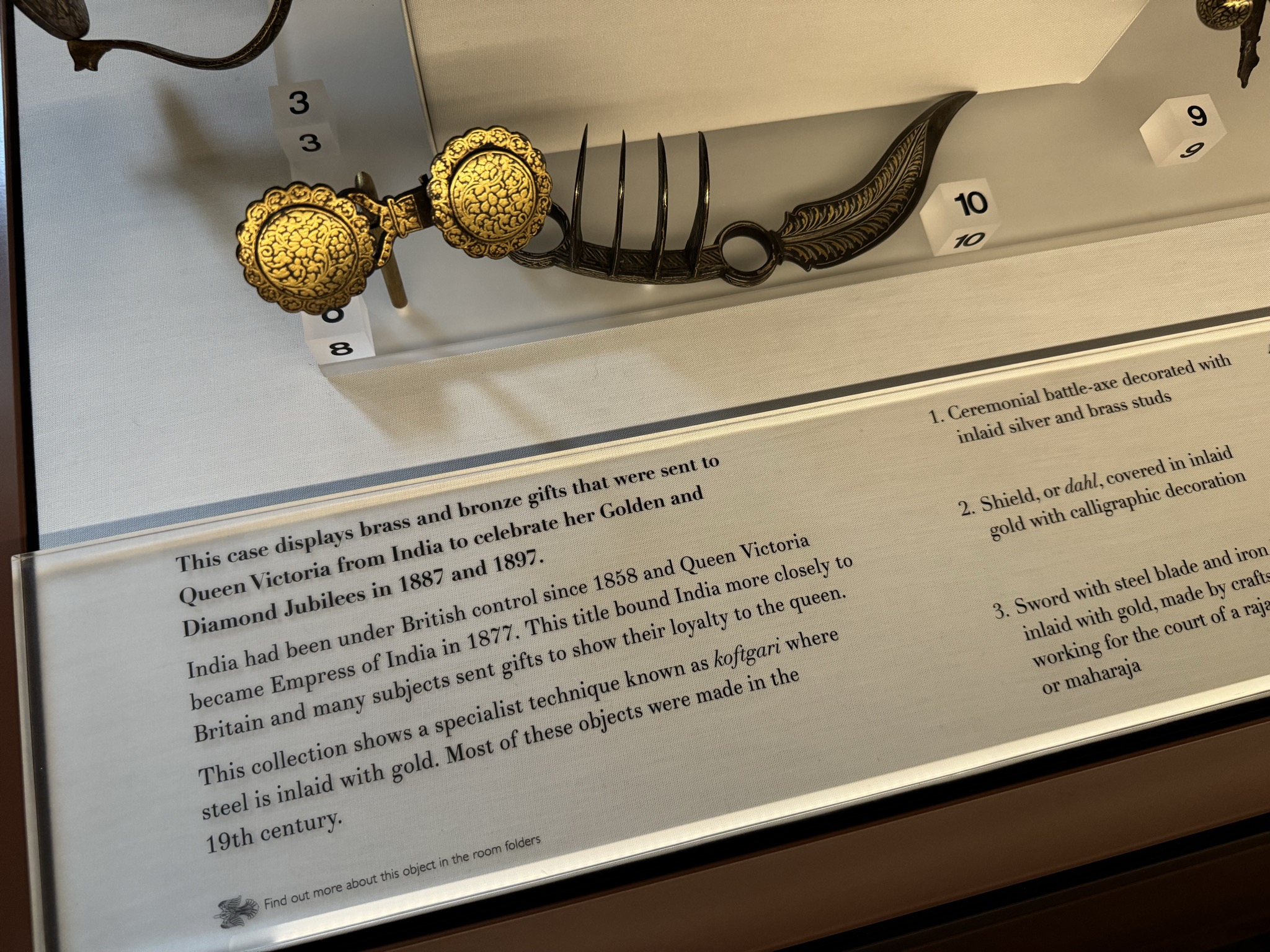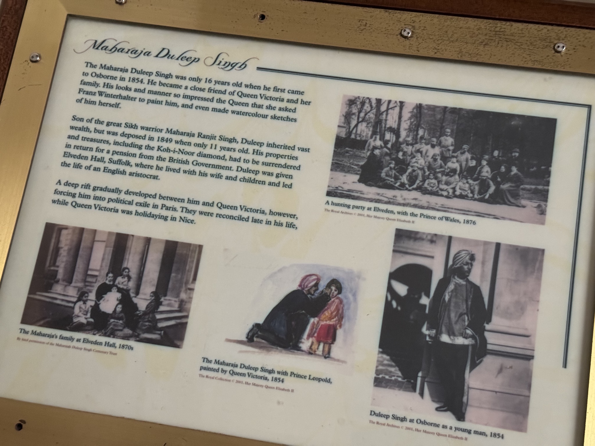 For an example of a museum waiting to undertake a re-examination of its exhibitions, consider Osborne House (operated by English Heritage), the country palace of Queen Victoria and Prince Albert. The displays in and around the Durbar Room discuss Britain’s relationship with India. The exhibitions include a panel about Maharaja Duleep Singh and that “his properties and treasures, including the Koh-i-Noor diamond, had to be surrendered in return for a pension from the British Government” and feature gifts sent from India to Queen Victoria to “show their loyalty to the queen.” The history is far more complex and this exhibition emphasizes only the British perspective and continues a mythology of India’s grateful subservience to the Queen.