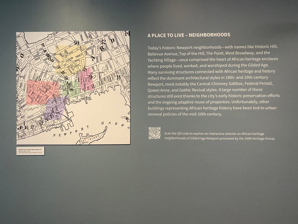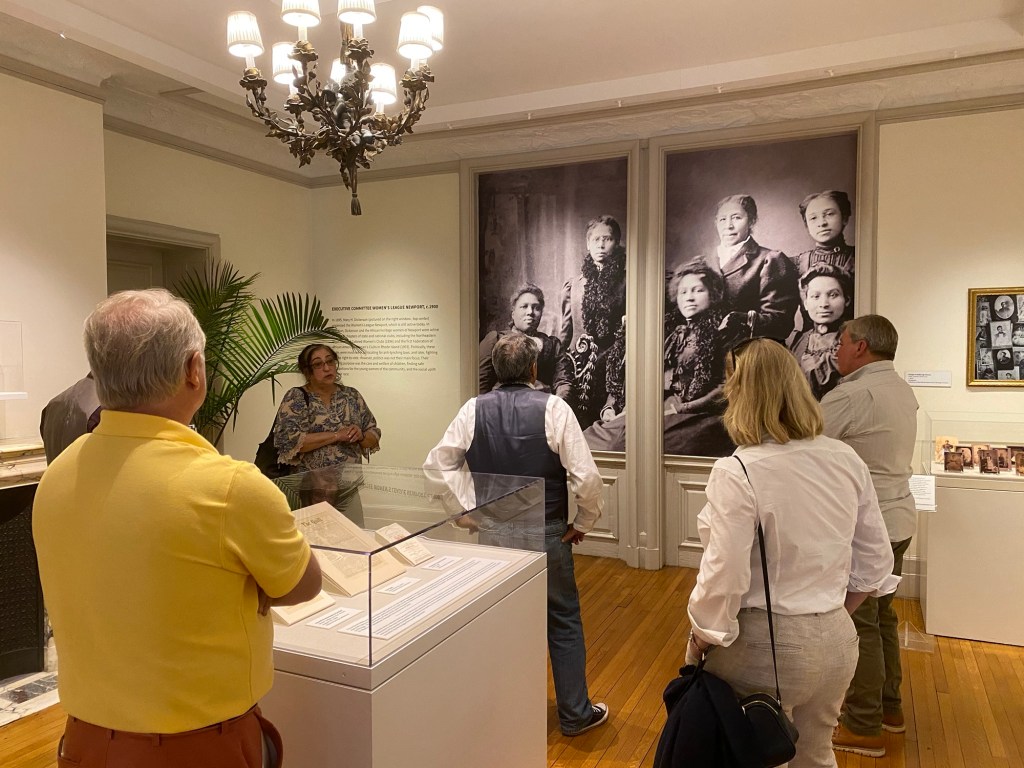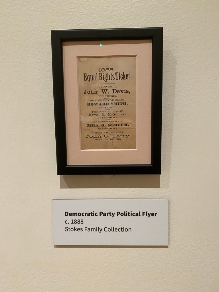 Soni Stokes discussing the role of women. Section on recreation and spot.African heritage neighborhoods in Newport.Introductory label to the exhibition.Equal Rights party ticket, 1888.