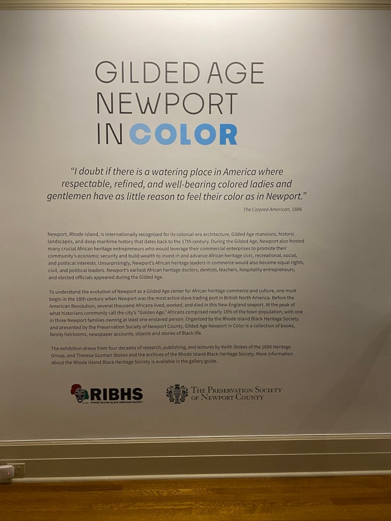 Indeed, the Rhode Island Black Heritage Society, Newport Historical Society, and the Preservation Society of Newport County are collaborating on exhibitions on the history and contributions of African Americans in the region. Before we officially began the course, Soni Stokes, curator of the exhibition, generously gave me and a small group of colleagues a tour of “Gilded Age Newport in Color” at Rosecliff, one of the mansions owned by the Preservation Society. It discusses the lives of dozens of people and families of African heritage through geography, biography, and topics such as business, entrepreneurship, religion, recreation, and politics. What most impressed me was the variety of documents and objects in the exhibition, most on loan from a private collection, giving me a much more holistic view into the lives of African Americans in New England.